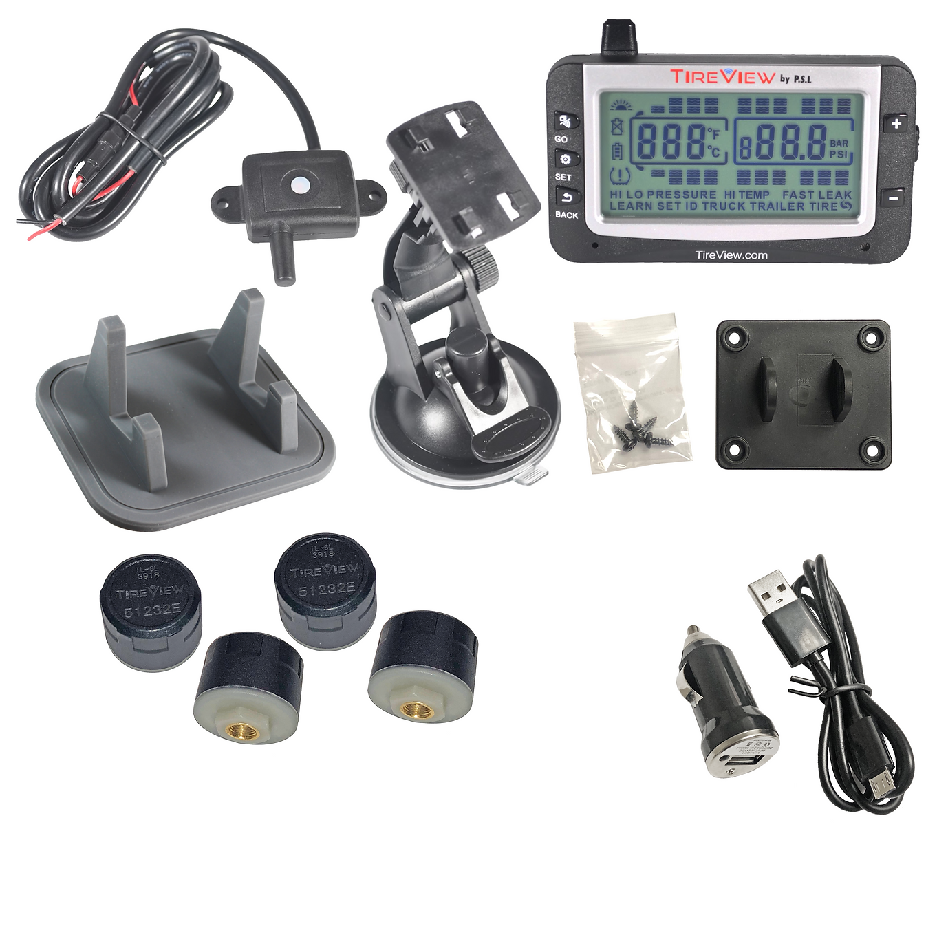 Cap Sensors, Display with USB Power Cable and 12V Connector. Put the power of technology to work for you with the most advanced tire pressure monitoring systems. TireView's efficient and reliable design makes monitoring your tires easier than ever. Not only will you gain peace of mind when you choose the most trusted brand on the market, but you’ll get top-rated customer service, online product support, and a full two-year warranty.
