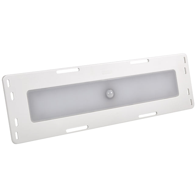 The M84444-A is a flush mount interior dome light / cargo light with PIR sensor. It is well suited for refrigerated trailers and is refrigeration / moisture safe. It is a high output 1,700 Lumen light with a frosted lens for even light distribution. The passive infrared (PIR) motion sensor automatically turns the light on and is on a 3 minute timer. The M84444-A’s multiple mounting holes and slots allow it to replace several popular brands. This light features a polycarbonate lens and housing and is backed by a 5-year warranty.